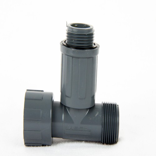Tee, O-ring style, PVC 25mm, 1 x female & 1 x male Swivel & 1 x fixed male thread, pressure rated